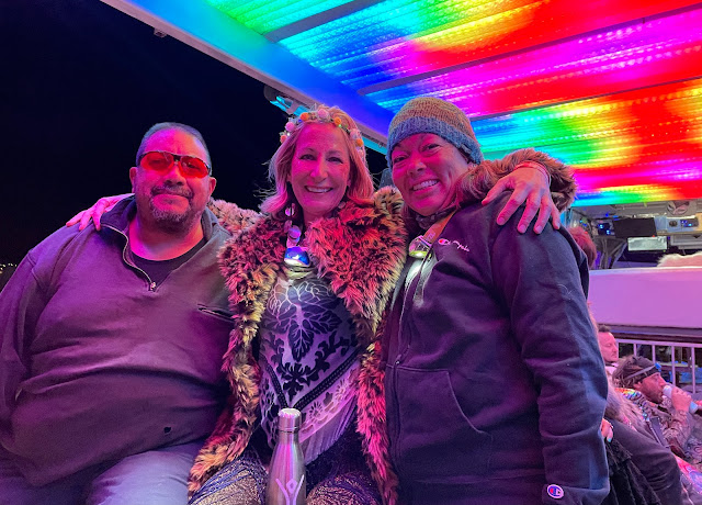 | Riding with Xuza in the art car parade. |