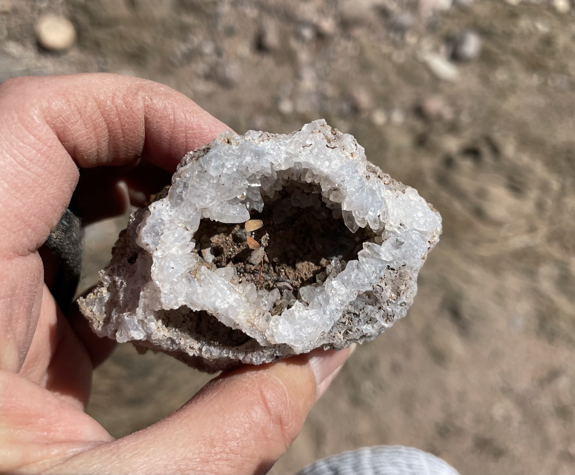| This is one of the prettiest rocks I've found to date. The center was filled with dirt, I didn't know what I'd found until I rinsed the dirt off. |