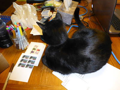 No kitty, bad kitty helping me send postcards. |